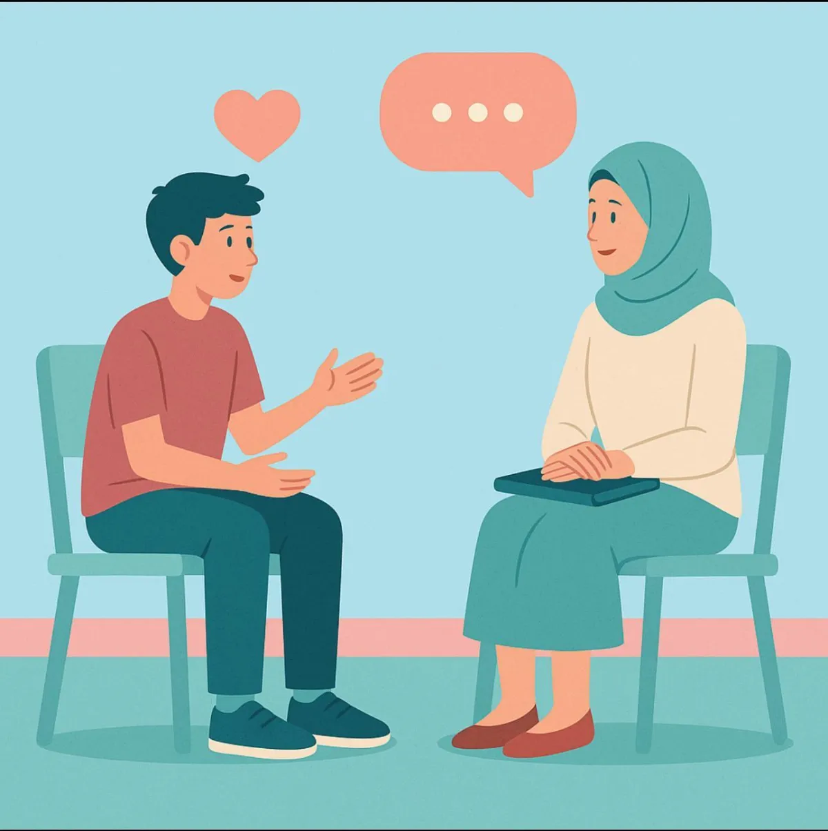 جلسات أونلاين 1:1 بترافق المراهق لاكتشاف نفسه، ترتيب أفكاره، والتعامل مع مشاعره بطريقة واعية وبعيدة عن التوجيه المباشر.